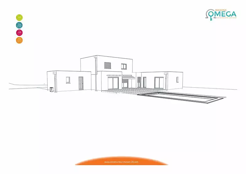 Sur ce terrain, nous vous proposons cette maison neuve : le modèle Pauillac, une maison d’architecte de toute beauté. Conçue par Maisons Omega, détenteur du label Maisons de Qualité, cette demeure contemporaine de 124 m² saura vous séduire par son design moderne et ses prestations haut de gamme.