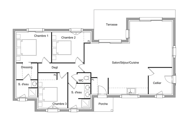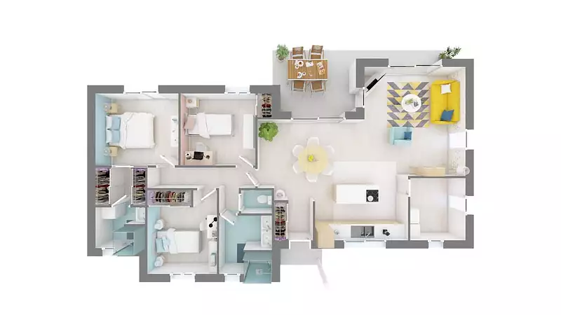 Sur ce terrain, nous vous proposons cette maison neuve : la Nontron. Conçue par Maisons Omega, détenteur du label Maisons de Qualité, cette demeure de 100 m² est idéale pour ceux qui recherchent une grande maison de plain-pied, alliant confort et modernité.