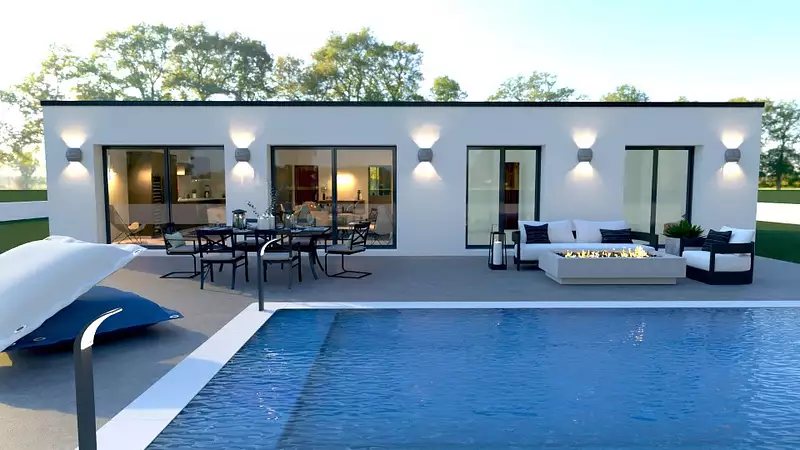 Terrain proposé par un partenaire foncier selon disponibilités et autorisation de publicité au prix de 139 900 €. Hors droit d'enregistrement et frais de notaire. Maison proposée, avec un contrat de construction de maison individuelle, dans le cadre de la loi du 19/12/1990, au prix de 255 100 € (Hors branchements et raccordements, papiers peints, peintures, revêtement de sol dans les chambres, qui sont chiffrés dans les travaux qui restent à charge du client. Tarif modifiable sans préavis). Étiquette énergie : A. Différents modèles disponibles pour ce terrain. Assurances et garanties du constructeur comprises (RC professionnelle, décennale, dommage ouvrage).