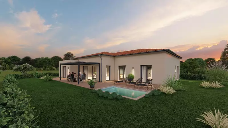 Le modèle est totalement adaptable à vos envies et besoins et personnalisable grâce à de nombreuses options de finition. Nous consulter pour plus d'informations. Le prix affiché comprend le coût du terrain et de la construction hors frais de notaire et taxes. Les annonces de terrains constructibles sont sélectionnées auprès de nos partenaires fonciers selon disponibilités et autorisation de publicité en vue de construire une maison neuve avec un Contrat de Construction de Maison Individuelle dans le cadre de la loi du 19/12/1990. Ces derniers sont soit des professionnels dûment habilités à la transaction immobilière, soit des particuliers. Les terrains sélectionnés sont disponibles à la date de la première parution de l'annonce. En aucun cas Maisons ARLOGIS ou ses collaborateurs ne sont propriétaires des terrains, ne jouent un rôle d'intermédiation ou de négociation sur la transaction et ne participent à la vente. Prix indiqués par nos partenaires fonciers. Visuel d'illustration. Le modèle est totalement adaptable à vos envies et besoins et personnalisable grâce à de nombreuses options de finition. Nous consulter pour plus d’informations. Le prix affiché comprend le coût du terrain et de la construction hors frais de notaire et taxes. Les annonces de terrains constructibles sont sélectionnées auprès de nos partenaires fonciers selon disponibilités et autorisation de publicité en vue de construire une maison neuve avec un Contrat de Construction de Maison Individuelle dans le cadre de la loi du 19/12/1990. Ces derniers sont soit des professionnels dûment habilités à la transaction immobilière, soit des particuliers. Les terrains sélectionnés sont disponibles à la date de la première parution de l’annonce. En aucun cas Maisons ARLOGIS ou ses collaborateurs ne sont propriétaires des terrains, ne jouent un rôle d’intermédiation ou de négociation sur la transaction et ne participent à la vente. Prix indiqués par nos partenaires fonciers.
