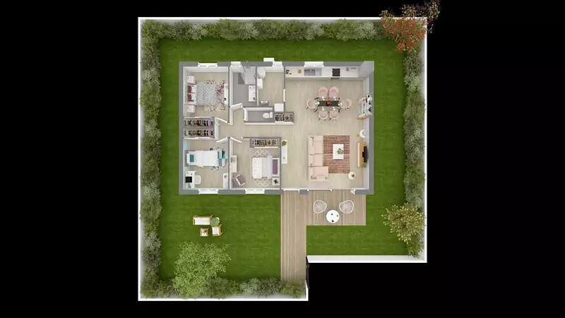 Terrain proposé par un partenaire foncier selon disponibilités et autorisation de publicité au prix de 61 000 €. Hors droit d'enregistrement et frais de notaire. Terrain + Maison proposés au prix de 178 000 € (Hors branchements et raccordements, papiers peints, peintures, revêtement de sol dans les chambres. Tarif modifiable sans préavis). Etiquette énergie : A. Différents modèles disponibles pour ce terrain.