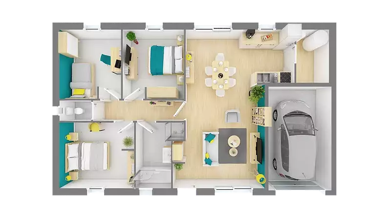 Les petits plus qui vous feront inévitablement craquer sur ce modèle : sa salle de bains spacieuse et un cellier derrière la cuisine ! C’est une maison pratique dans laquelle votre famille se sentira à l’aise tout de suite !