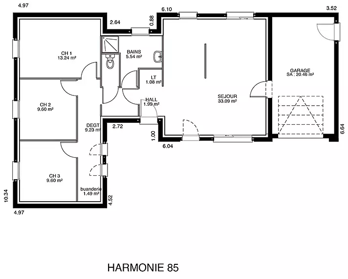 L'architecture de ""Harmonie"" a été étudiée pour s'intégrer parfaitement à son environnement tout en mettant en avant une esthétique moderne et épurée. Le garage intégré est un atout majeur, offrant non seulement un espace de stationnement sécurisé mais aussi une facilité d'accès à la maison, quelles que soient les conditions météorologiques.