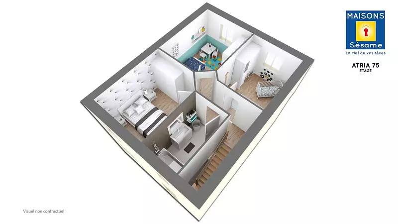 Le modèle ATRIA 75 est une maison à étage de 73 m², parfaitement agencée pour offrir un espace de vie fonctionnel et confortable.