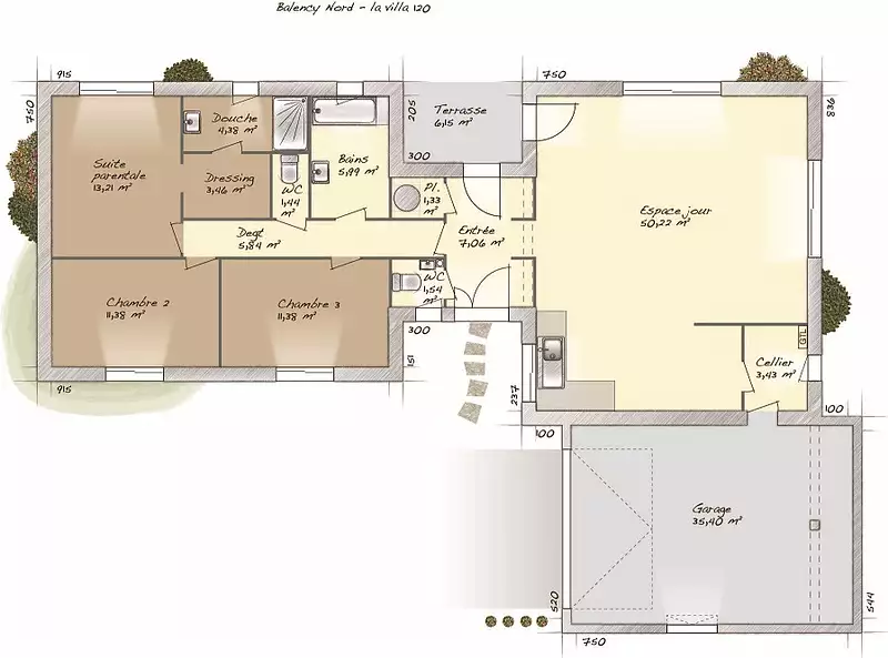 Proposée par MAISONS BALENCY – 5 pièces - 3 chambres - terrain 1 052 m²