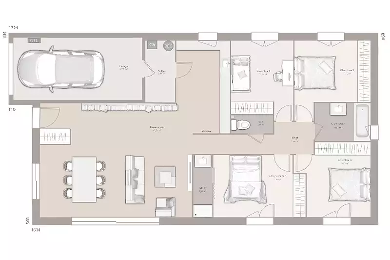 - Chambres : 4
