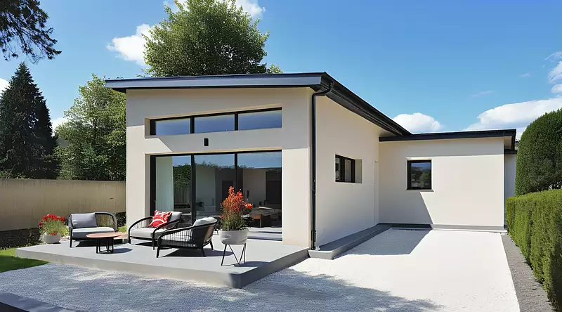 Photos non contractuelles Visuel d'illustration. Le modèle est totalement adaptable à vos envies et besoins et personnalisable grâce à de nombreuses options de finition. Nous consulter pour plus d’informations. Le prix affiché comprend le coût du terrain et de la construction hors frais de notaire et taxes. Les annonces de terrains constructibles sont sélectionnées auprès de nos partenaires fonciers selon disponibilités et autorisation de publicité en vue de construire une maison neuve avec un Contrat de Construction de Maison Individuelle dans le cadre de la loi du 19/12/1990. Ces derniers sont soit des professionnels dûment habilités à la transaction immobilière, soit des particuliers. Les terrains sélectionnés sont disponibles à la date de la première parution de l’annonce. En aucun cas Maisons ARLOGIS ou ses collaborateurs ne sont propriétaires des terrains, ne jouent un rôle d’intermédiation ou de négociation sur la transaction et ne participent à la vente. Prix indiqués par nos partenaires fonciers.