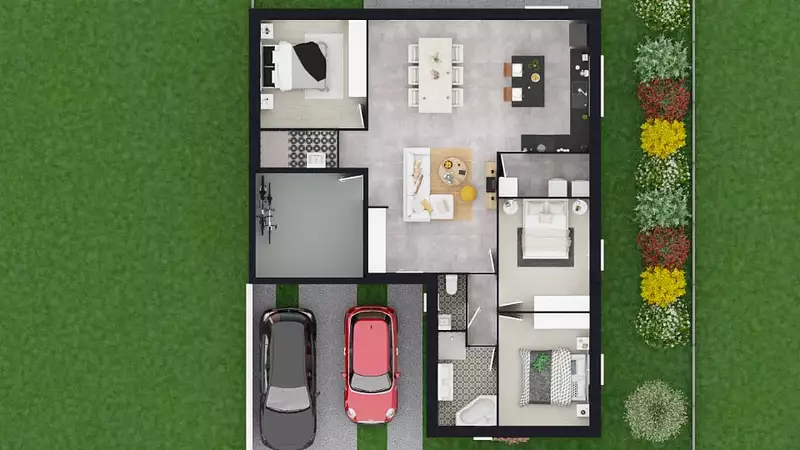 - Cuisine fonctionnelle, ouverte ou indépendante selon aménagement.