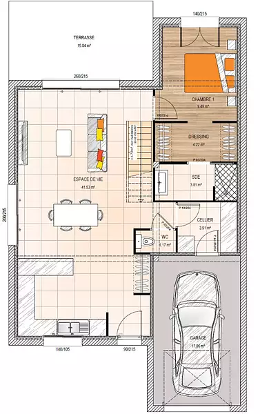 Proposée par MAISONS BERNARD JAMBERT – 5 pièces - 3 chambres - terrain 429 m²