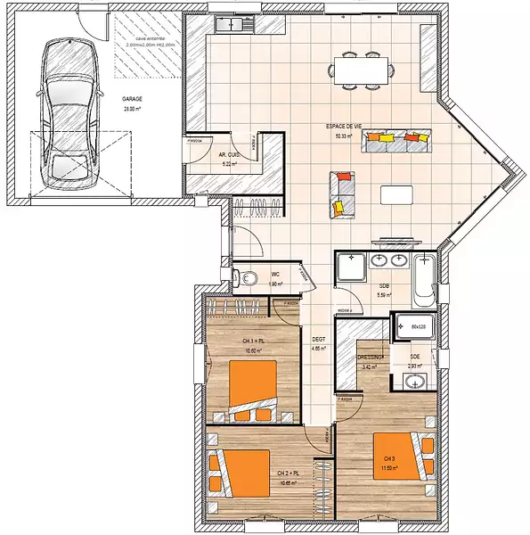 Proposée par MAISONS BERNARD JAMBERT – 5 pièces - 3 chambres - terrain 331 m²