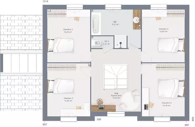 Proposée par MAISONS FRANCE CONFORT – 8 pièces - 5 chambres - terrain 370 m²