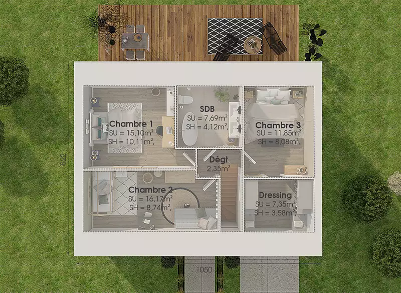 Proposée par MAISONS EVOLUTION – 4 pièces - 3 chambres - terrain 300 m²
