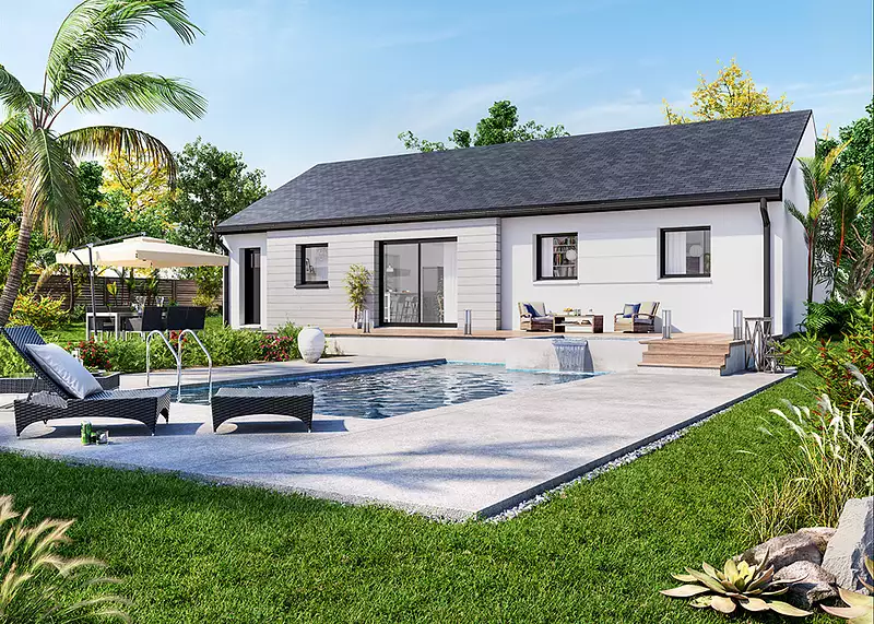 Ce pavillon neuf se compose d'un bel espace de vie tout ouvert, 3 chambres, une salle de bains avec grande douche italienne, un WC séparé et un cellier pour 90 m2 habitables, ainsi qu'un garage communiquant de 22 m2. Maison offrant de belles prestations avec ses menuiseries et volets centralisés, chauffage central économique, RE2020.