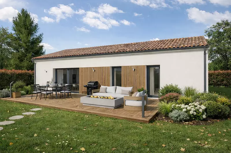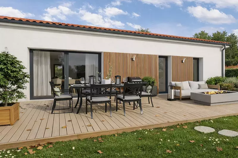 Cette maison allie modernité, fonctionnalité et élégance pour offrir un cadre de vie chaleureux et harmonieux. Son agencement optimisé permet à chaque membre de la famille de profiter d’un espace bien pensé, où confort et praticité se rencontrent. Avec quatre chambres accueillantes, une grande pièce de vie lumineuse, une salle de bain moderne et un cellier pratique, elle répond parfaitement aux besoins du quotidien. Son espace de vie convivial invite aux moments de partage, tandis que ses finitions soignées et son système de chauffage performant assurent un bien-être optimal en toute saison. Son architecture contemporaine et son aménagement astucieux en font un véritable cocon, où il fait bon vivre jour après jour. Pour vous assurer un confort de vie et conformément à la RE2025, nous avons choisi un mode de chauffage par PAC + plancher chauffant, volets roulants électriques. Prix hors peinture, décoration, revêtements de sol dans les chambres, cuisine équipée, frais de notaire, raccordements, dommage ouvrage.
