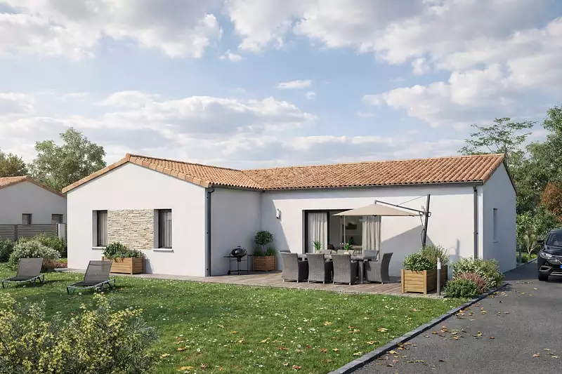 Découvrez un projet de maison contemporaine qui allie élégance, confort et fonctionnalité. Conçue pour s’adapter aux besoins d’aujourd’hui, elle offre un intérieur lumineux et chaleureux, idéal pour une vie de famille épanouie. Son architecture moderne maximise les espaces tout en apportant une belle harmonie entre volumes ouverts et coins plus intimistes. Chaque pièce est pensée pour conjuguer praticité et bien-être, avec des finitions soignées qui font toute la différence. Vous y trouverez un vaste espace de vie convivial, une cuisine ouverte propice au partage, des chambres confortables, une salle de bain élégante et des rangements astucieux pour un quotidien organisé. À l’extérieur, profitez d’un espace agréable où vous pourrez créer votre cocon, qu’il s’agisse d’un jardin fleuri, d’une terrasse accueillante ou d’un espace détente selon vos envies. Un lieu de vie conçu pour vous offrir un quotidien fluide et apaisant, où chaque instant devient un plaisir. Pour vous assurer un confort de vie et conformément à la RE2025, nous avons choisi un mode de chauffage par PAC + plancher chauffant, volets roulants électriques. Prix hors peinture, décoration, revêtements de sol dans les chambres, cuisine équipée, frais de notaire, raccordements, dommage ouvrage.