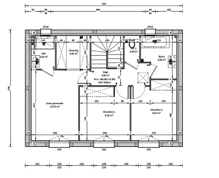A l'étage se trouve 2 chambres avec leur salle d'eau ainsi qu'une suite parentale avec dressing et salle d'eau.