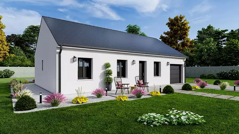 Nous vous proposons cette maison neuve, baptisée ""Saphir"", un modèle de notre gamme Primaciel conçu pour être accessible au plus grand nombre et idéal pour une première acquisition. De plain-pied, cette maison à prix maîtrisé bénéficie d'un aménagement optimisé avec son garage intégré, offrant un confort de vie inégalé sur une surface de 68 m².