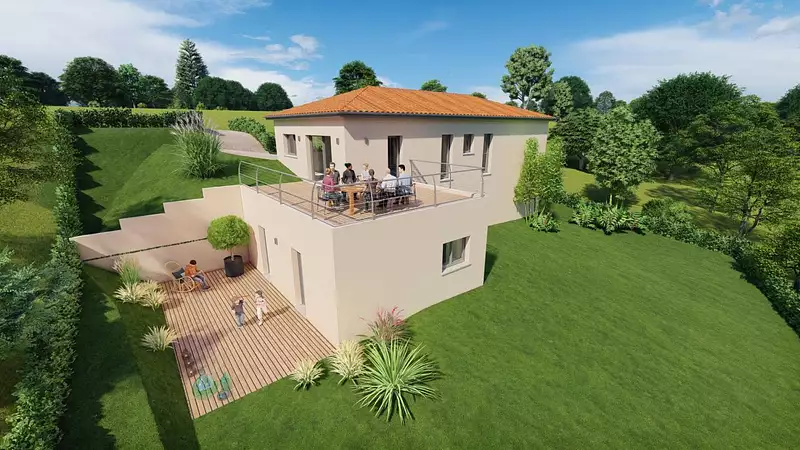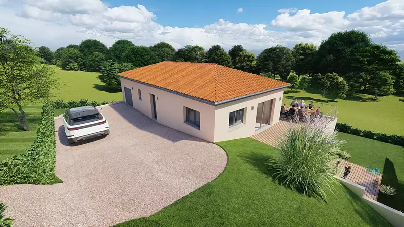 Terrain en accord avec notre partenaire foncier, sous réserve de disponibilité. Prix et visuels non contractuels. Projet conforme à la RE2020. Visuel d'illustration. Le modèle est totalement adaptable à vos envies et besoins et personnalisable grâce à de nombreuses options de finition. Nous consulter pour plus d’informations. Le prix affiché comprend le coût du terrain et de la construction hors frais de notaire et taxes. Les annonces de terrains constructibles sont sélectionnées auprès de nos partenaires fonciers selon disponibilités et autorisation de publicité en vue de construire une maison neuve avec un Contrat de Construction de Maison Individuelle dans le cadre de la loi du 19/12/1990. Ces derniers sont soit des professionnels dûment habilités à la transaction immobilière, soit des particuliers. Les terrains sélectionnés sont disponibles à la date de la première parution de l’annonce. En aucun cas Maisons ARLOGIS ou ses collaborateurs ne sont propriétaires des terrains, ne jouent un rôle d’intermédiation ou de négociation sur la transaction et ne participent à la vente. Prix indiqués par nos partenaires fonciers.