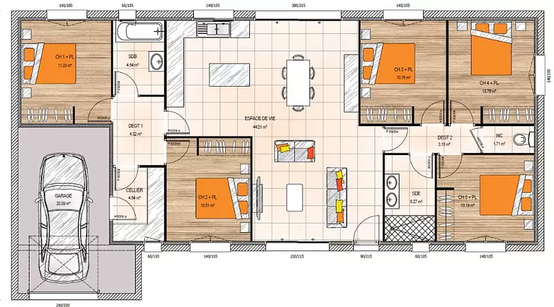 Proposée par MAISONS BERNARD JAMBERT – 7 pièces - 5 chambres - terrain 527 m²