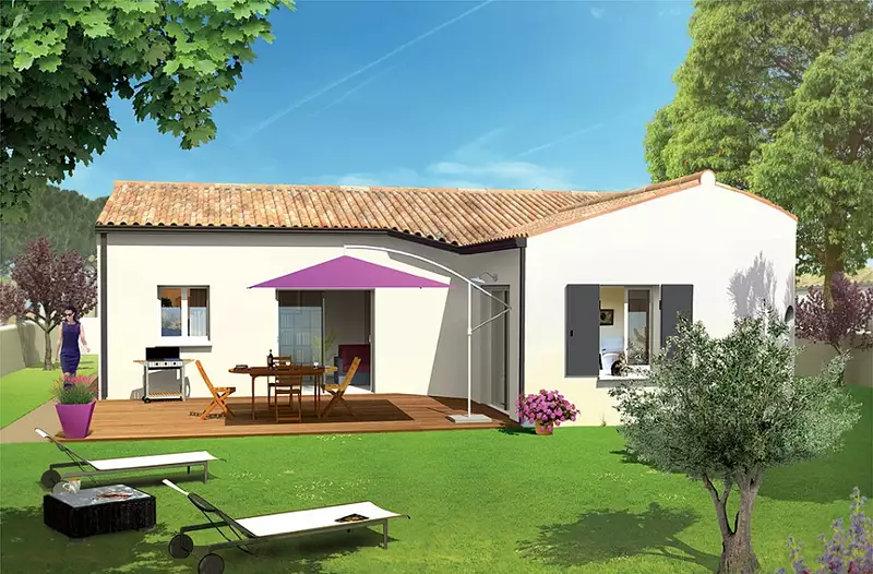 Localisée à 12 km de La Rochelle, Maisons Acco La Jarne vous propose à Villedoux (17230), cette maison de plain-pied de 110 m² sur un terrain de 375m². Maison en L, elle dispose de trois chambres, d'une salle de bains et d'un bel espace de vie.