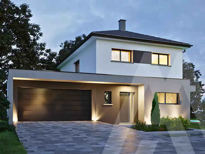 ***** Visuel d'illustration. Le modèle est totalement adaptable à vos envies et besoins et personnalisable grâce à de nombreuses options de finition. Nous consulter pour plus d’informations. Le prix affiché comprend le coût du terrain et de la construction hors frais de notaire et taxes. Les annonces de terrains constructibles sont sélectionnées auprès de nos partenaires fonciers selon disponibilités et autorisation de publicité en vue de construire une maison neuve avec un Contrat de Construction de Maison Individuelle dans le cadre de la loi du 19/12/1990. Ces derniers sont soit des professionnels dûment habilités à la transaction immobilière, soit des particuliers. Les terrains sélectionnés sont disponibles à la date de la première parution de l’annonce. En aucun cas Maisons ARLOGIS ou ses collaborateurs ne sont propriétaires des terrains, ne jouent un rôle d’intermédiation ou de négociation sur la transaction et ne participent à la vente. Prix indiqués par nos partenaires fonciers.