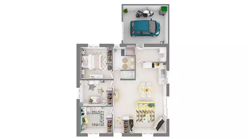 Les options les plus demandées par nos clients sont disponibles pour ce modèle : une deuxième salle de bains, un garage accolé ou un carport.