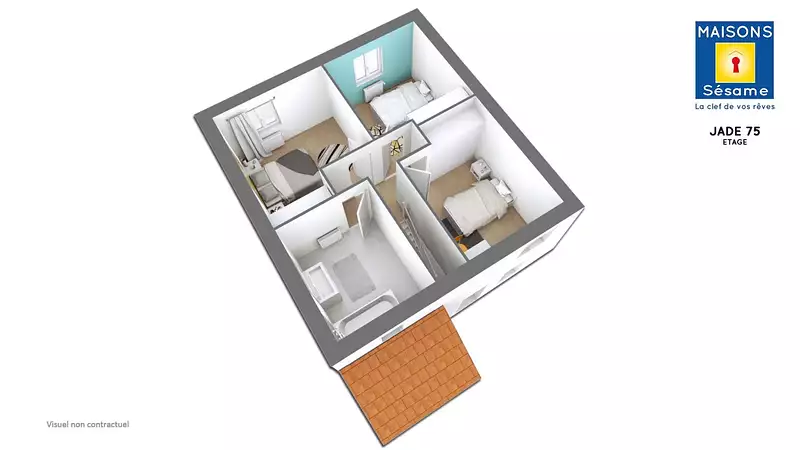 Le modèle JADE 75 est une maison à étage de 67 m², offrant un agencement intelligent et moderne. Son garage intégré avec une petite avancée sur l’avant de la maison lui confère un style unique et contemporain, alliant esthétisme et fonctionnalité.