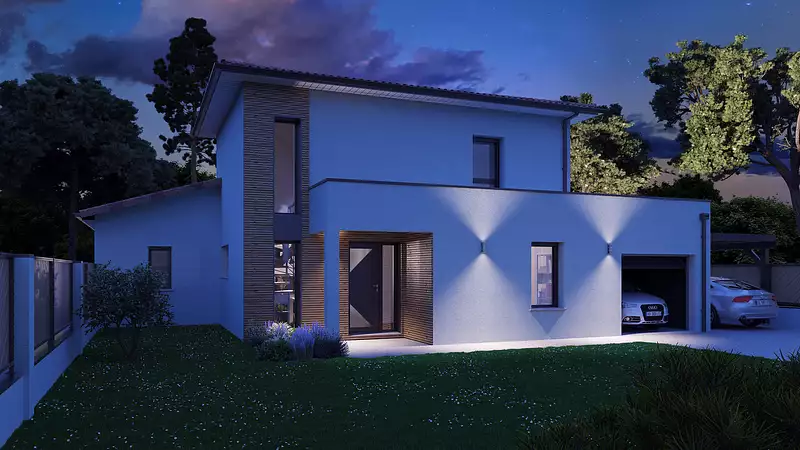 Maison moderne et lumineuse avec une toiture zinc Anthracite. Au RDC, l’entrée avec placard dessert un WC séparé et l’escalier. Vous disposez d’une belle pièce de vie de plus de 52m², d’un bureau de 9m², une suite parentale 23 m² avec dressing, SDE, WC. La cuisine est attenante à un cellier donnant sur un garage de 15 m² et un carport pouvant accueillir une 2e voiture. A l’étage, un pallier distribue 2 chambres avec placards de 11. 5m², une SDE avec douche et double vasque et un WC séparé. Pour vous assurer un confort de vie et conformément à la RE2025, nous avons choisi un mode de chauffage par PAC + plancher chauffant, volets roulants électriques. Prix hors peinture, décoration, revêtements de sol dans les chambres, cuisine équipée), frais de notaire, raccordements, dommage ouvrage. (Piscine non contractuelle, non comprise dans le prix).