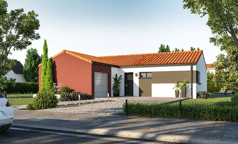 En vente : localisée sur le littoral atlantique et à quelques kilomètres de Nantes, Maisons de l'Avenir Rezé vous propose cette maison de 3 pièces de plain-pied de 85 m² et de 350 m² de terrain à Vue (44640).