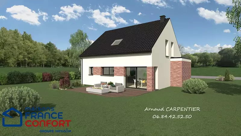 Terrain proposé par un partenaire foncier selon disponibilités et autorisation de publicité au prix de 57 000 €. Hors droit d'enregistrement et frais de notaire. Terrain + Maison proposés au prix de 246 393 € (Hors branchements et raccordements, papiers peints, peintures, revêtement de sol dans les chambres. Tarif modifiable sans préavis). Etiquette énergie : A. Différents modèles disponibles pour ce terrain. . HEXAOM Services est enregistré auprès de l'ORIAS en tant que Courtier en financement, Niveau 1, sous le numéro 14001345.