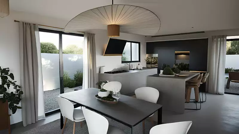 Le garage attenant facilite le stationnement et le rangement, tandis que le mode de chauffage aérothermique assure une efficacité énergétique optimale. Située dans un environnement calme, à proximité de toutes les commodités nécessaires, vous trouverez des arrêts de bus, des services de santé, des crèches, des écoles primaires et des commerces accessibles en quelques minutes. Ce projet de construction est le choix parfait pour les familles désirant allier confort moderne et cadre de vie agréable. Ne manquez pas cette occasion de devenir propriétaire dans un cadre familial idéal, alliant espace de vie et proximité des services. Visuel d'illustration. Le modèle est totalement adaptable à vos envies et besoins et personnalisable grâce à de nombreuses options de finition. Nous consulter pour plus d’informations. Le prix affiché comprend le coût du terrain et de la construction hors frais de notaire et taxes. Les annonces de terrains constructibles sont sélectionnées auprès de nos partenaires fonciers selon disponibilités et autorisation de publicité en vue de construire une maison neuve avec un Contrat de Construction de Maison Individuelle dans le cadre de la loi du 19/12/1990. Ces derniers sont soit des professionnels dûment habilités à la transaction immobilière, soit des particuliers. Les terrains sélectionnés sont disponibles à la date de la première parution de l’annonce. En aucun cas Maisons ARLOGIS ou ses collaborateurs ne sont propriétaires des terrains, ne jouent un rôle d’intermédiation ou de négociation sur la transaction et ne participent à la vente. Prix indiqués par nos partenaires fonciers.