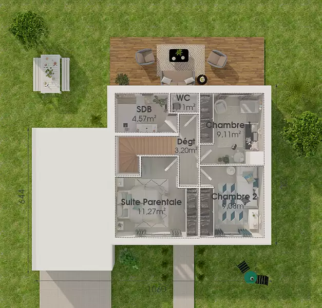 Proposée par MAISONS FRANCE CONFORT – 4 pièces - 3 chambres - terrain 616 m²