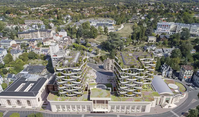 Vastes terrasses végétalisées avec vues spectaculaires sur les massifs alpins et le lac du Bourget