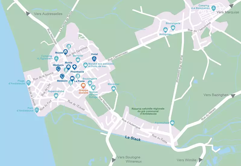 Ambleteuse, village de pêcheurs sur le littoral de la Manche, fait partie de l’un des sites protégés des « Deux Caps », Parc naturel des Caps et Marais d’Opale. Entre Wissant et Wimereux, tout proche d’Audresselles, Ambleteuse se distingue par ses étendues de sable fin qui s'étirent à l'infini, ses dunes pittoresques et ses panoramas côtiers à couper le souffle. Les amateurs de la nature sauront apprécier la proximité des sentiers de randonnées bucoliques et des réserves naturelles qui parent les alentours du village. Parmi ces trésors naturels, les dunes de la Slack offrent une écosphère unique et préservée, propice à la contemplation et à l'exploration de la faune et de la flore autochtones.