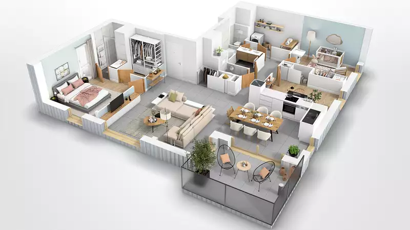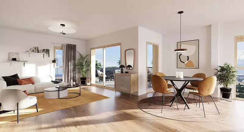 Avec une surface habitable de 102,21 m², cet appartement se distingue par sa pièce de vie spacieuse et lumineuse de 44,34 m². La chambre parentale de 12,37 m² est dotée d'un dressing de 2,23 m² et d'une salle d'eau privative. Deux autres chambres de plus de 10 m² chacune, avec placards intégrés, complètent cet espace de vie. En prolongement des séjours, un balcon protégé en semi-loggia fonctionne comme une véritable pièce à part entière, pour une expérience de vie tout autant intimiste que tournée vers l'extérieur.