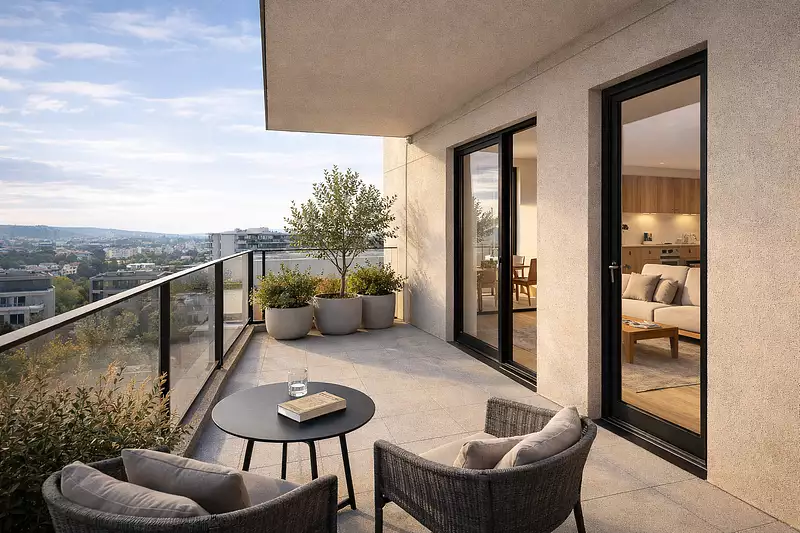Les appartements offrent des espaces de vie fonctionnels et lumineux, avec des prestations soignées : carrelage grand format, parquet dans les chambres, volets roulants motorisés, vidéophone et porte palière sécurisée. Conforme à la réglementation RE2020 et certifiée NF Habitat, la résidence garantit un bon niveau de confort thermique et de performance énergétique.