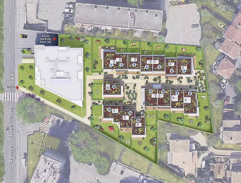 Ce domaine intimiste se compose de 15 maisons du 3 Pièces au 5 Pièces avec chacune sa terrasse et son jardin privatif. L’architecture contemporaine des maisons avec leurs toitures végétalisées et leurs matériaux de qualité, s’intègre harmonieusement dans l’environnement.