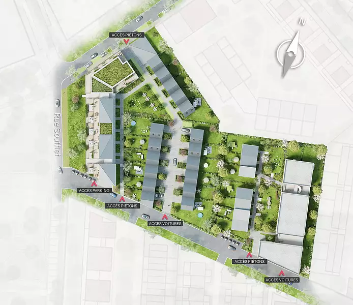 Profitez des dernières maisons 4 pièces avec jardin privatif et des appartements 3 ou 4 pièces avec balcon, loggia ou terrasse, disponibles immédiatement, avec les frais de notaire offerts.