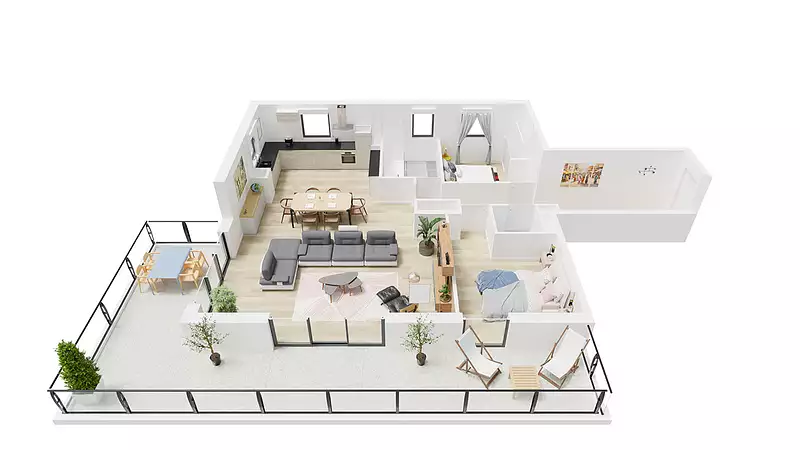 | 76 m² | 459 900 € | 2ème étage, terrasse | Plan et Infos |