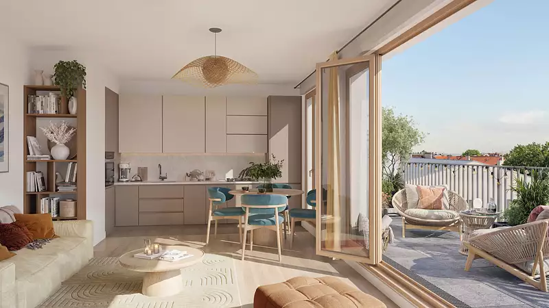 Elixir à Aubervilliers est une résidence attrayante située en plein centre-ville. Elle propose une architecture élégante de style Faubourien, associée à un cœur d'îlot végétalisé. Les appartements, du studio au 5 pièces duplex, bénéficient tous d'un balcon, d'une terrasse ou d'un jardin privatif, ainsi que de surfaces généreuses, parfaits pour les familles. Située à moins de 5 min à pied de tous les commerces, services, écoles et collège, vous profiterez au sein d'Elixir d'un cadre de vie fonctionnel et d'un grand confort au quotidien.
