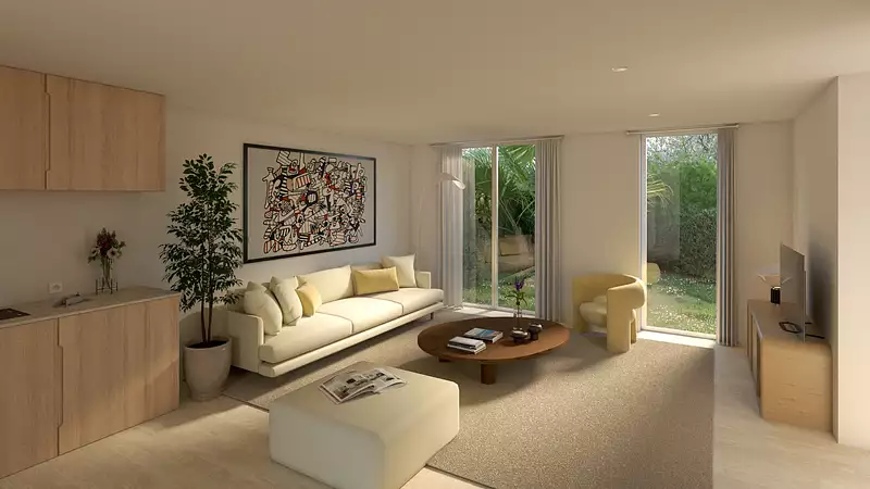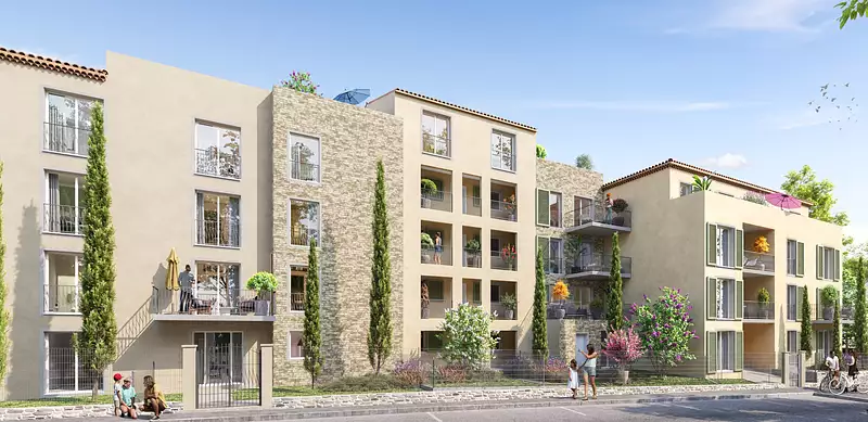 Côté Village, une résidence à l’architecture provençale… le Toit se pare de tuiles, tandis que les façades s’habillent en partie de parements en pierres. Au cœur de l’ilot, un jardin décoré d’une fontaine rappelle l’esprit village. Un large choix d’appartement, allant du studio/cabine au 4 pièces Duplex confortables et baignés de lumière, tous prolongés de balcons, belles terrasses ou jardins privatifs. Prestations de standing - Parkings en sous-sol.