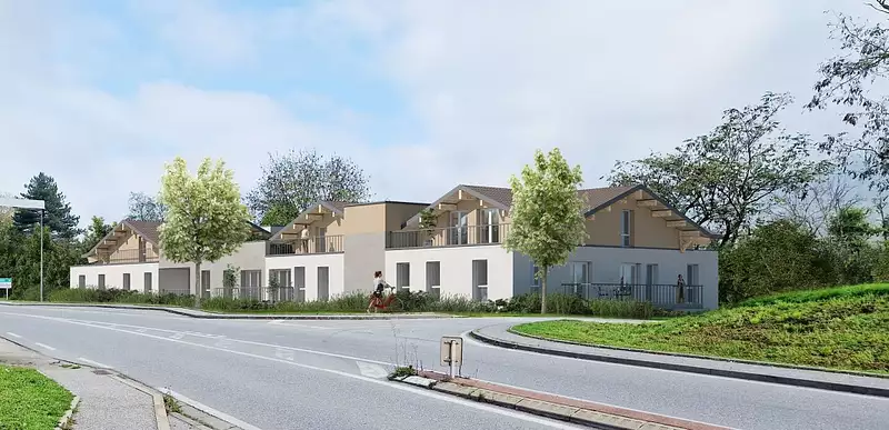 Entre sérénité et dynamise transfrontalier La commune de Beaumont est située au pied du mont Salève, à 5km* de la frontière Suisse, dans le département de la Haute-Savoie et la région Auvergne-Rhône-Alpes. Elle s’inscrit comme un lieu résidentiel agréable, à la fois calme et connecté. Nichée dans le Genevois français, la commune offre un panorama exceptionnel sur les Alpes et le Jura, tout en profitant d’une position stratégique entre Genève, Annemasse et Annecy. La vie à Beaumont se veut à la fois pratique et conviviale Que ce soit en voiture, en transport en commun ou à vélo, la commune bénéficie d’un accès aux grands axes et à la Suisse voisine. La proximité avec les zones d’emploi transfrontalières comme Annemasse (14min en voiture) et Genève (20min en voiture) font de Beaumont un point stratégique. Elle est desservie par des lignes de bus, notamment la ligne M, qui relient Beaumont à Saint-Julien-en-Genevois et à la frontière Suisse en une trentaine de minutes. La commune possède de nombreux commerces de proximité : boulangerie, pharmacie, presse, banque… mais également la mairie, des groupes scolaires, une bibliothèque…de quoi faciliter le quotidien des personnes à la recherche de calme, sans renoncer aux facilités urbaines. Nouvelle adresse intimiste La nouvelle résidence Bô-salève se compose de 25 logements du 2 au 4 pièces. Cette résidence à taille humaine est propice au bien-être. Ce programme immobilier neuf, à Beaumont, répond aux normes en vigueur et offre des prestations soignées et modernes à ses habitants : carrelage et parquet stratifié, cuisine et salle de bains aménagés, chauffage électrique numérique et connecté, vidéophone et serrure sécurité 5 points et stationnement privatif pour chaque logement. Promoteur national et tout particulièrement présent en Auvergne-Rhône-Alpes depuis plus de 25 ans, Crédit Agricole Immobilier vous propose, en tant qu'expert de la promotion immobilière, la résidence située à Beaumont, en Haute-Savoie. Ne manquez pas ce nouveau projet et contactez-nous pour votre projet de résidence principale ou d'investissement locatif en VEFA en Haute-Savoie.