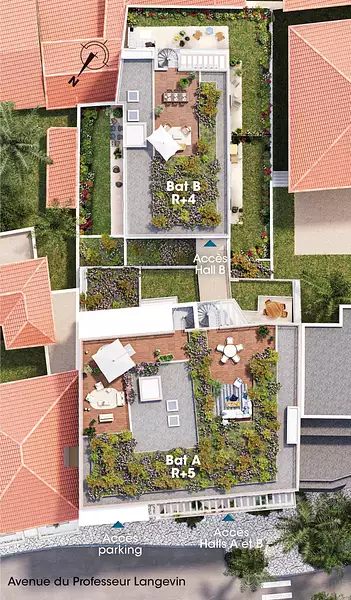 Les appartements neufs, du studio au 5 pièces, offrent des prestations haut de gamme : climatisation réversible, espace extérieur pour tous dès le 2 pièces et des terrasses rooftop aux vues panoramiques pour certains.