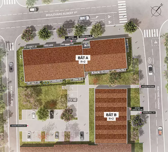 Située Boulevard Albert 1er, la résidence bénéficie d’un emplacement privilégié, permettant un accès immédiat aux commerces et services du quotidien. Crèches, écoles, Carrefour, cabinet médical… tout est à quelques minutes à pied ou à vélo, facilitant ainsi la vie des résidents. Par ailleurs, la ligne de tram C "La Belle Rose", à deux pas de la résidence, permet de rejoindre le centre de Bordeaux en seulement 14 minutes, assurant une connexion rapide et pratique.