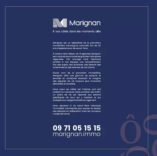 Remise exceptionnelle pour toute réservation signée entre le 15/01/2026 et 28/02/2026 inclus régulièrement réitéré par acte notarié concernant la résidence "Ôvéa" à Montpellier(34). Dans la limite des stocks disponibles - offre non cumulable avec toutes autres offres Marignan en cours ou à venir. Voir conditions auprès d’un conseiller ou sur marignan.com.
