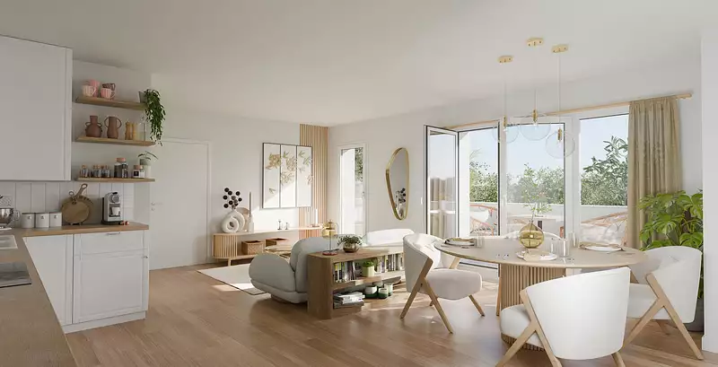 Engagée sur le plan environnemental, cette opération RE2020 seuil 2028 s'appuie sur des prestations exemplaires : label NF Habitat HQE, BiodiverCity, BBCA et matériaux biosourcés niveau 1.