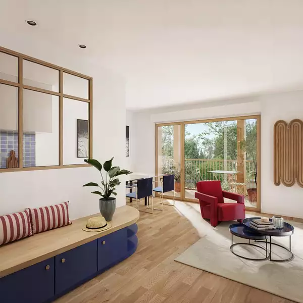 Chaque logement dispose d’un espace extérieur privé : jardin, balcon ou terrasse tropézienne, dans un environnement verdoyant préservant de nombreux arbres existants. .**
