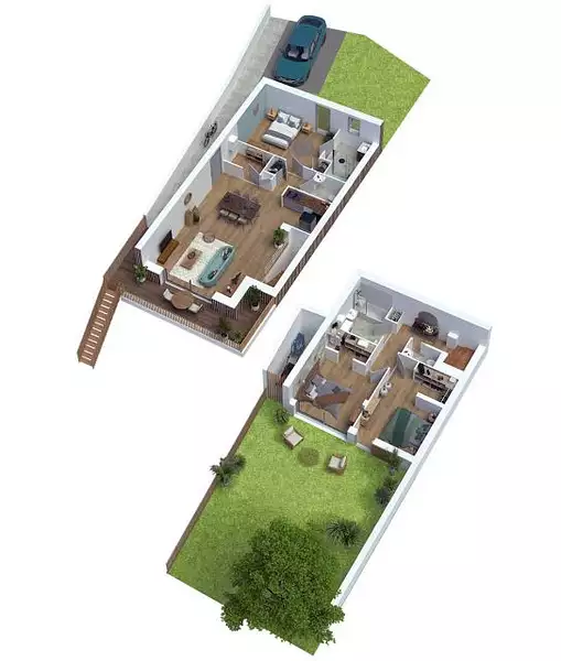 Ces maisons de 4 pièces offrent une superficie de104m² et donnent la priorité au bien-être ensemble grâce à la qualité de l’habitat proposé et le soin apporté à l’environnement immédiat.