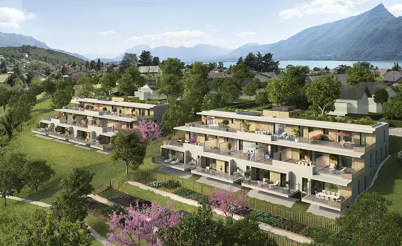 ONAÉE propose 30 logements modernes, allant du 2 au 4 pièces, répartis en deux bâtiments distincts. Chaque appartement est conçu pour offrir un confort optimal et dispose d’un espace extérieur : un jardin, une terrasse ou un balcon. Certains logements offrent même une vue imprenable sur le magnifique Lac du Bourget, le plus grand lac naturel de France.