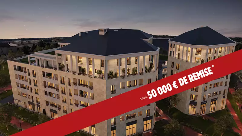 (1) Remise de 10000€ par pièce pour la résidence "LE GEORGES" à BUSSY-SAINT-GEORGES commercialisée par INTERCONSTRUCTION, signée avant le 31/12/2025, offre valable dans la limite des stocks disponibles au 18/11/2025, dans la limite de : 8 T3, 6 T4,1 T5 . (2) *Frais de notaire offerts pour la résidence "LE GEORGES" à BUSSY-SAINT-GEORGES commercialisée par INTERCONSTRUCTION, signée avant le 30/11/2025, hors frais éventuels liés à l'emprunt et hors frais d'hypothèque, de caution de privilège de prêteur de deniers ou de tout autre frais éventuel de garantie liés au financement de l’acquisition, dans la limite des stocks disponibles. Les conditions de cette offre sont disponibles auprès de nos équipes commerciales et non cumulables avec toutes autres offres en cours ou à venir. Offre non échangeable ni remboursable.